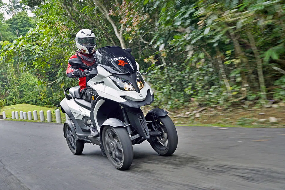 The engine could use a bit more zing, because its 31.7 horsepower output doesn't go a long way when it has 281kg of Qooder to push around, to say nothing of the rider. The brakes have their work cut out for them slowing this much bike down, too.