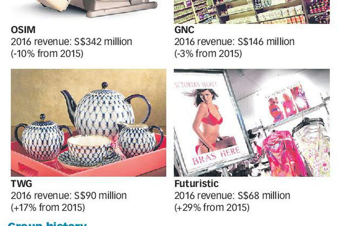 It holds OSIM International's old massage chair, luxury tea and nutritional supplements businesses. V3 will also own 69 per cent of Futuristic, a Singapore-headquartered business that made S$68 million in revenue in 2016.