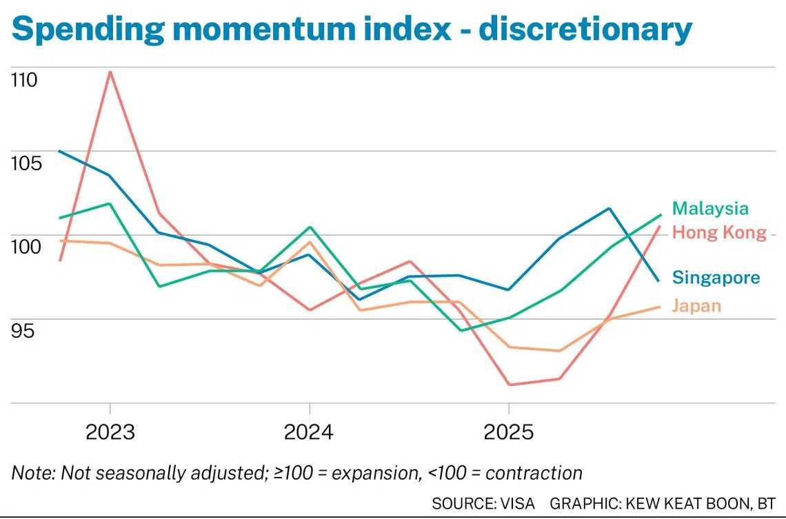 [SINGAPORE] Asia-Pacific markets exposed to the artificial intelligence (AI) boom drove outbound spending in 2025, amid an increase in their economic strength, data by Visa indicated.