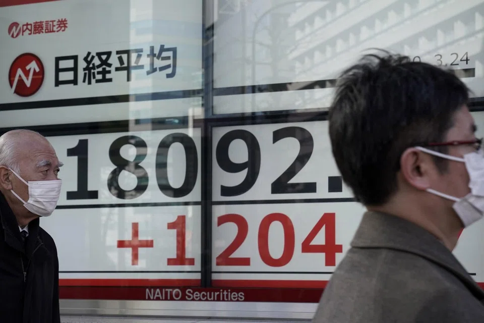 The MSCI Asia Pacific Index rallied as much as 4.8 per cent as of 3.58 pm in Hong Kong on Tuesday, set for the most since October 2008. South Korea stocks jumped 8.6 per cent after the nation doubled its emergency funds, while Japan's blue-chip measure Nikkei 225 rose 7.1 per cent, the most since 2016. Hong Kong's Hang Seng Index closed 4.5 per cent higher.