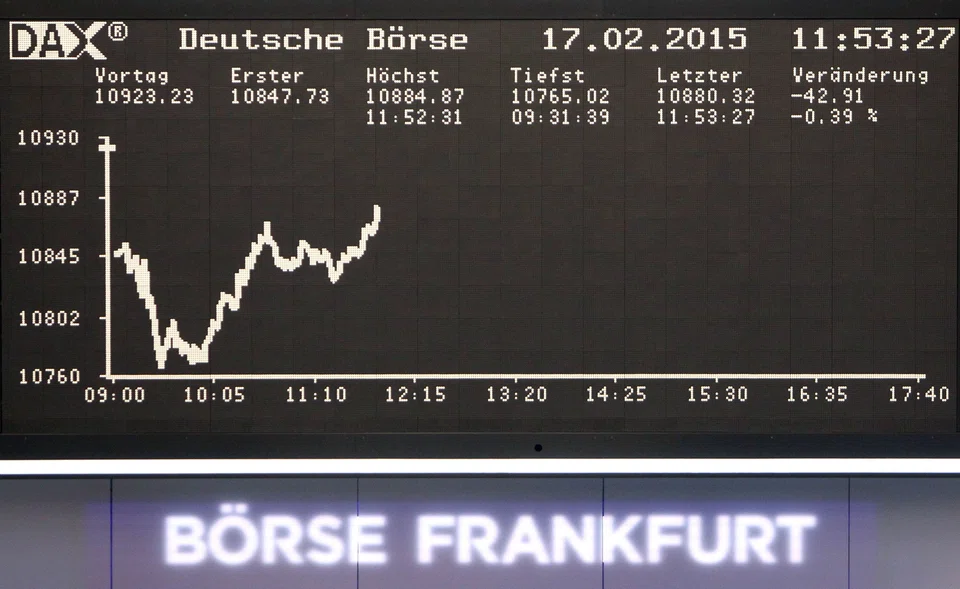 Germany's leading stock market index smashed through the psychologically important level, one week after the European Central Bank began its 1.14-trillion-euro (S$1.7-trillion) bond-buying stimulus.