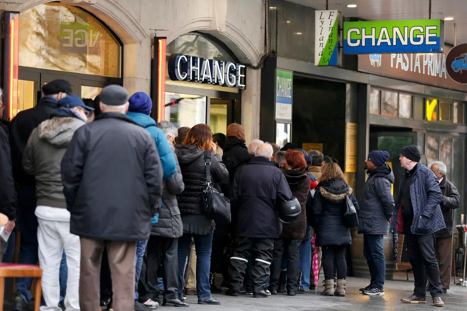 Franc Strengthens The franc rallied to a record against the euro on Thursday after the Swiss National Bank scrapped its policy of capping its currency. The central bank lowered a benchmark interest rate to minus 0.75 per cent from minus 0.25 per cent.