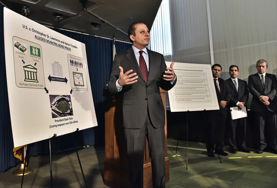 At a news conference in Manhattan, US attorney Preet Bharara called the Ramapo case a "landmark" first to result in criminal securities fraud charges, adding: "I suspect it will not be the last."