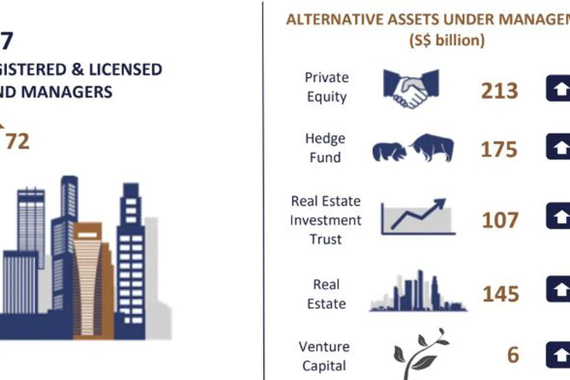 This growth was mostly thanks to a 15 per cent surge in alternative assets to S$646 billion last year, which was supported by strong inflows and continued valuation gains across private market asset classes including private equity (PE) and venture capital (VC), the central bank said on Wednesday.