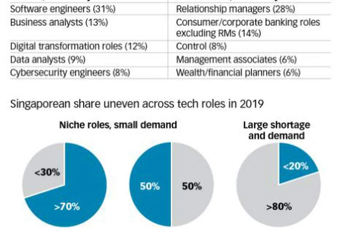 While Singaporeans account for a majority of "niche" tech roles where hiring numbers are relatively small, they tend not to fill roles with the strongest demand, such as in software engineering.