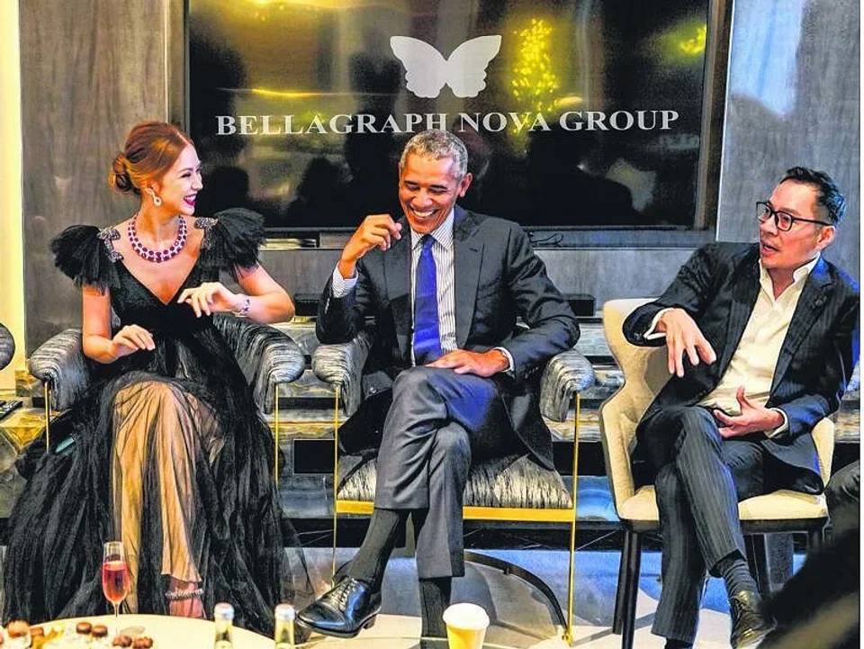 The statement also featured a photo purporting to portray the Lohs, Ms Shen and Mr Obama together, with the caption stating that the four of them were "having an engaging discussion on how BN Group wants to harness technology to benefit mankind".