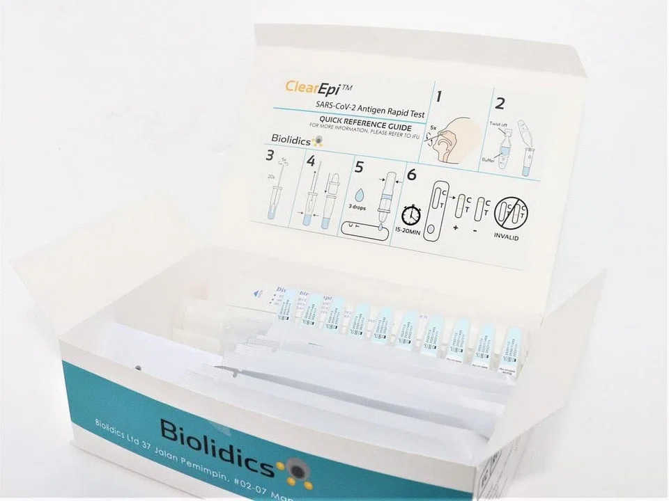 The raw materials of the antigen test kit, named ClearEpi SARS-CoV-2 Antigen Rapid Test Kit (ClearEpi ART), are sourced from JOYSBIO (Tianjin) Biotechnology Co, which Biolidics has a distribution agreement with. The kits are packaged and labelled by third-party manufacturers.