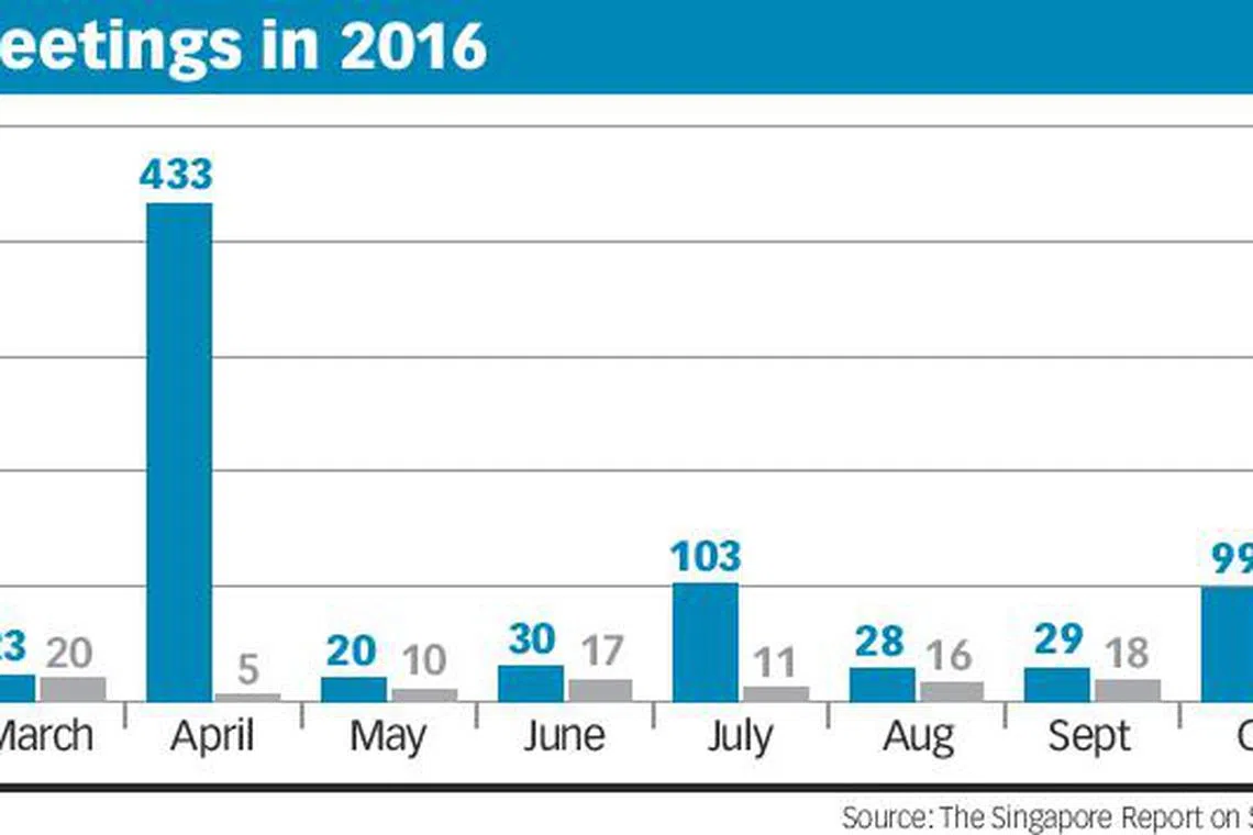 Released on Monday, the report covered 893 meetings conducted last year by 703 issuers with a primary listing on the Singapore Exchange (SGX).