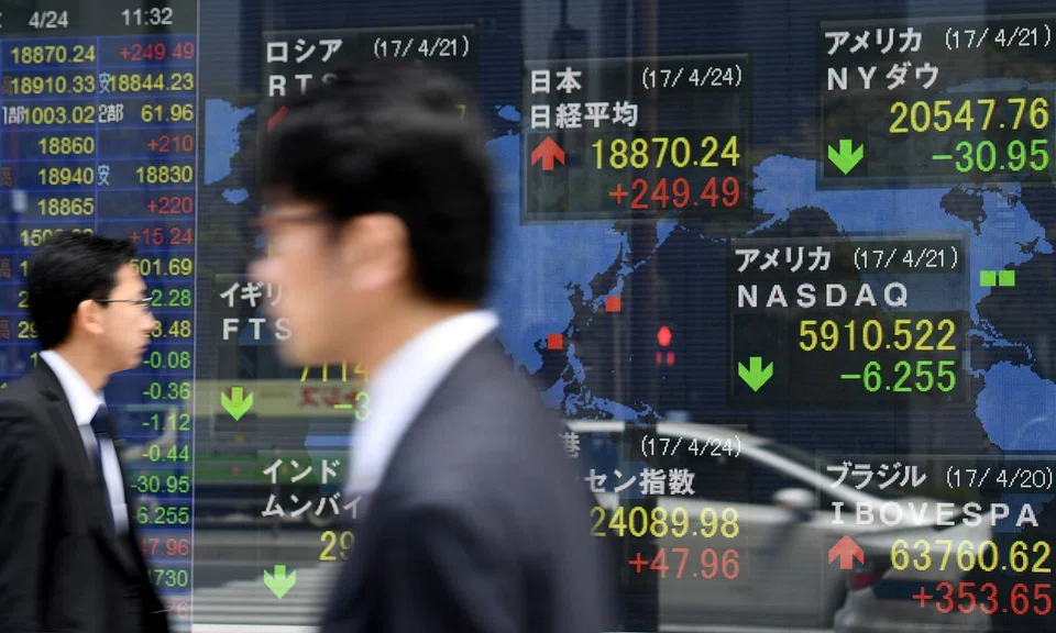 Taiwan stocks bucked the trend, surpassing the 10,000 point mark to hit a two-year high. They were last up about 0.2 per cent.