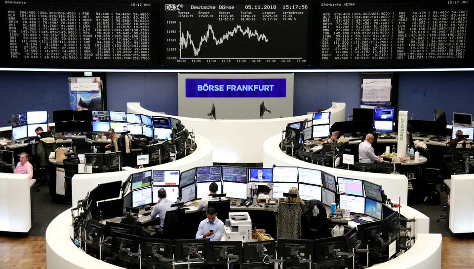 Germany's DAX led with a 0.5 per cent fall, weakened by a 1 per cent loss for bank stocks, which tend to suffer when expectations for future interest rates fall.