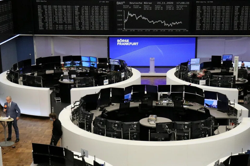 [BENGALURU] European shares closed lower on Monday as investors weighed signs of progress in developing a Covid-19 vaccine against the threat of economic damage from sweeping business restrictions to contain a surge in infections.