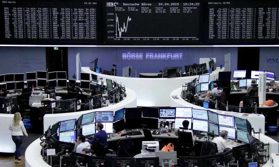 [LONDON] Europe's leading stock markets fell at the start of trading on Tuesday, with London's benchmark FTSE 100 index down 0.43 per cent to 7,073.68 points.