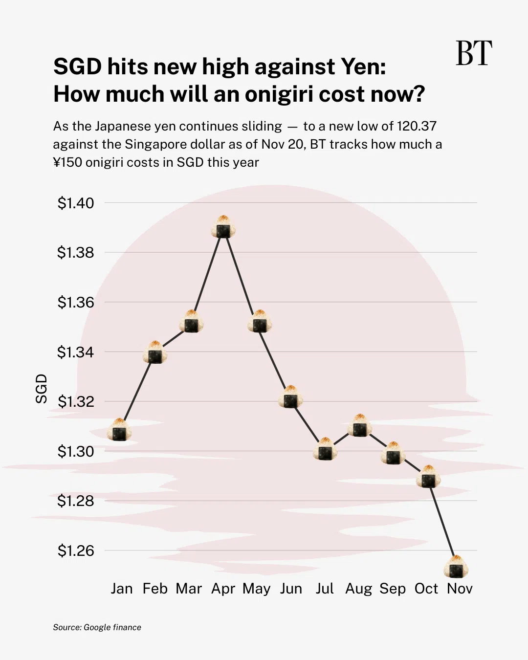 “A stronger Singdollar means lower travel and import costs from Japan for Singapore households and businesses. For corporates exporting into Japan, however, the stronger Singdollar may weigh on price competitiveness,” he said.