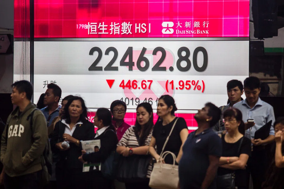 The Hang Seng index fell 1.12 per cent, or 252.46 points, to 22,278.63.