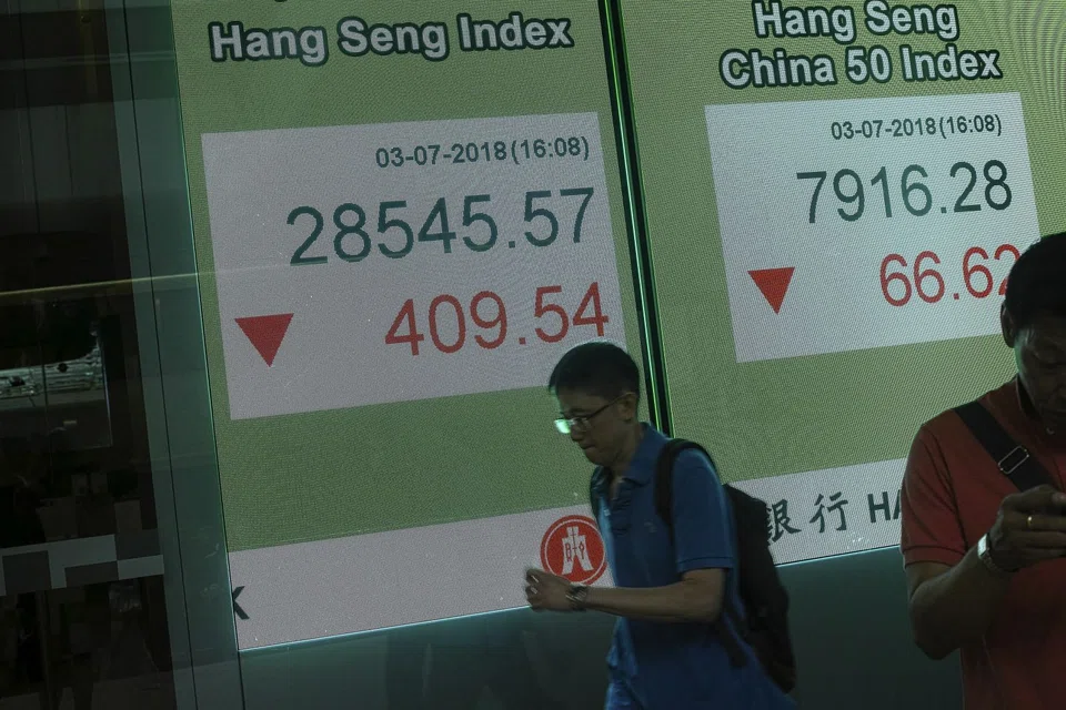 [HONG KONG] Hong Kong stocks plunged more than two per cent on opening Wednesday after the US threatened tariffs on another US$200 billion of Chinese imports, ramping up a potentially damaging trade war.
