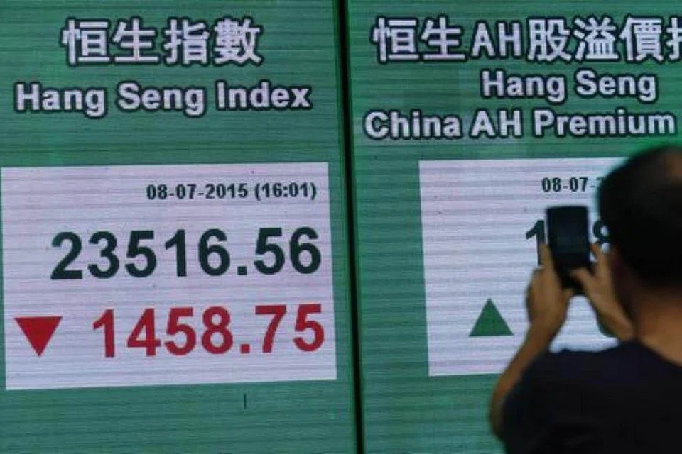 [HONG KONG] Hong Kong stocks ended down on Tuesday, as profit-taking after three days of gains overshadowed a record close on Wall Street while traders await a key Federal Reserve policy meeting later in the week.