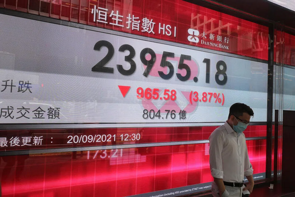 [HONG KONG] Hong Kong stocks finished Friday with losses as a lack of information from struggling property giant Evergrande about its bond payments spurred uncertainty among investors.