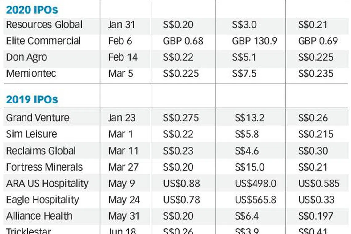 Singapore's IPOs were projected to remain unchanged to slightly higher than the 11 launched last year, with the easing of the US-China trade spat and Brexit now a fact. But the Covid-19 outbreak threw a spanner in the works. It has dampened optimism as businesses are affected by broken supply chains, disrupted production and flagging demand for their goods and services due to the outbreak.