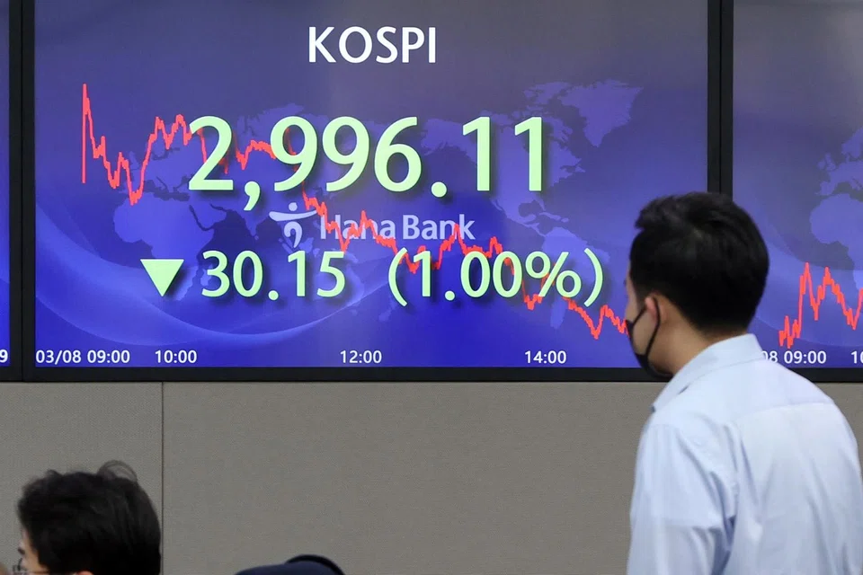 The Kospi closed down 19.99 points, or 0.67 per cent, at 2,976.12, extending the declines to a fourth straight session.