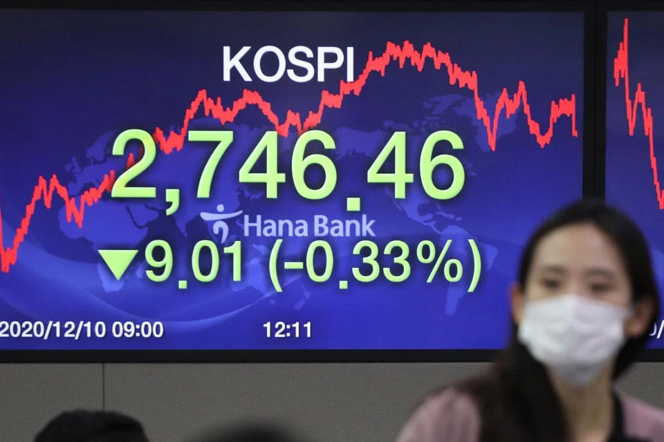 [SEOUL] South Korean shares fell on Tuesday as worries grew over surging coronavirus cases at home and abroad. The won weakened and the benchmark bond yield fell.