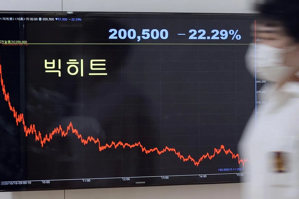 [SEOUL] South Korean shares fell on Tuesday as rising coronavirus cases globally dented sentiment, although strong domestic third-quarter economic growth data capped losses. The won and the benchmark bond yield both rose.