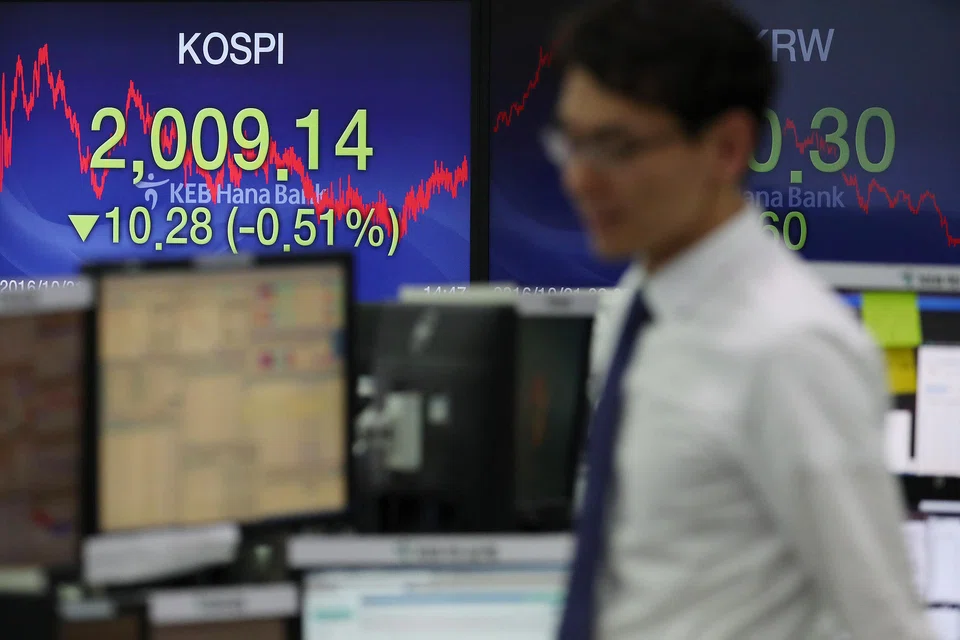 The Korea Composite Stock Price Index (Kospi) was down 0.2 per cent at 2,004.39 points as of 0212 GMT, its weakest level since Sept 12, 2016.