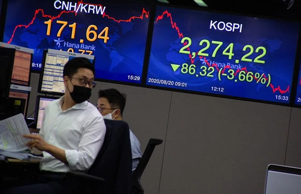 The benchmark Kospi closed down 27.63 points or 1.17 per cent at 2,326.17. For August, the index was up 3.4 per cent, recording a fifth straight monthly gain.