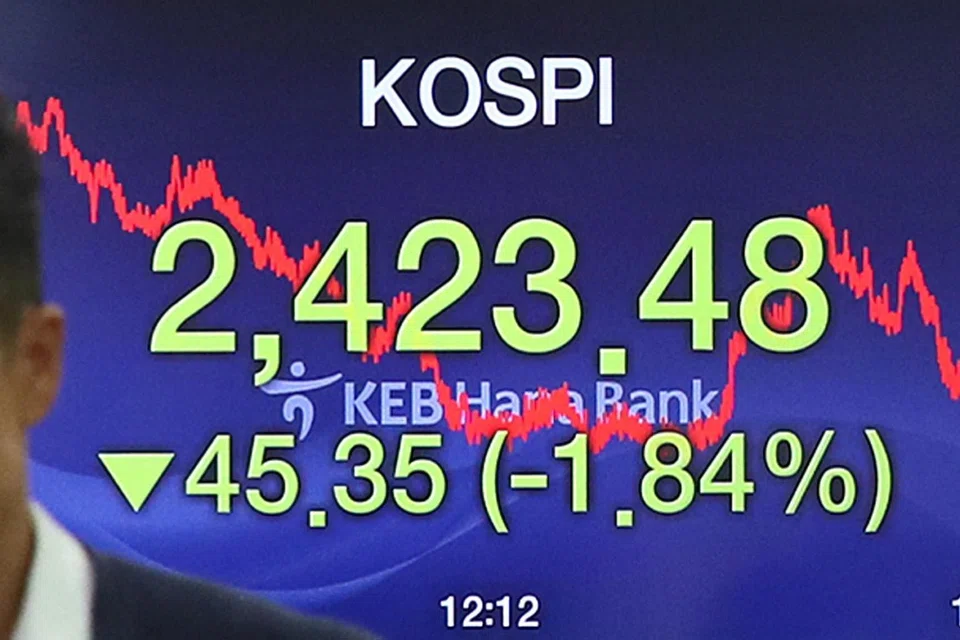 Seoul: Stocks fall most in 2 months as US Treasury yields soar; won falls nearly 1%