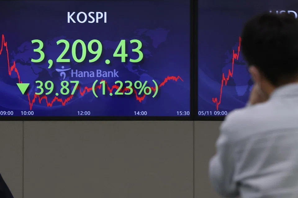 The Kospi ended down 47.77 points or 1.49 per cent to 3,161.66, its biggest single-day drop since April 21. The index had ended 1.23 per cent lower on Tuesday.