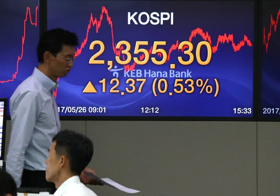 The Kospi fell 0.93 per cent to 2,347.10 points as of 0035 GMT, and the won was quoted at 1,141.6 to the US dollar, down 0.5 per cent versus Tuesday's close.