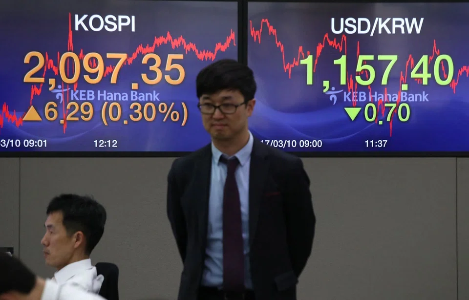 Offshore investors were set to be buyers for a sixth straight session, purchasing a net 164.3 billion won (S$201.74 million) worth of Kospi shares near mid-session.