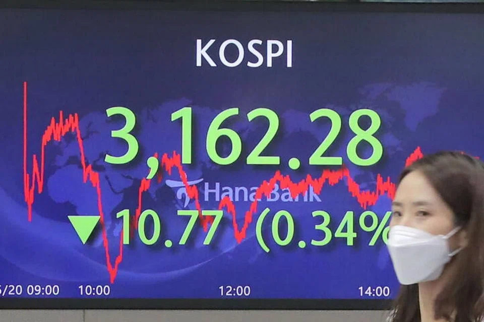 [SEOUL] South Korean shares ended lower on Monday as investors weighed a plunge in cryptocurrencies and awaited key US inflation readings this week for guidance on monetary policy.