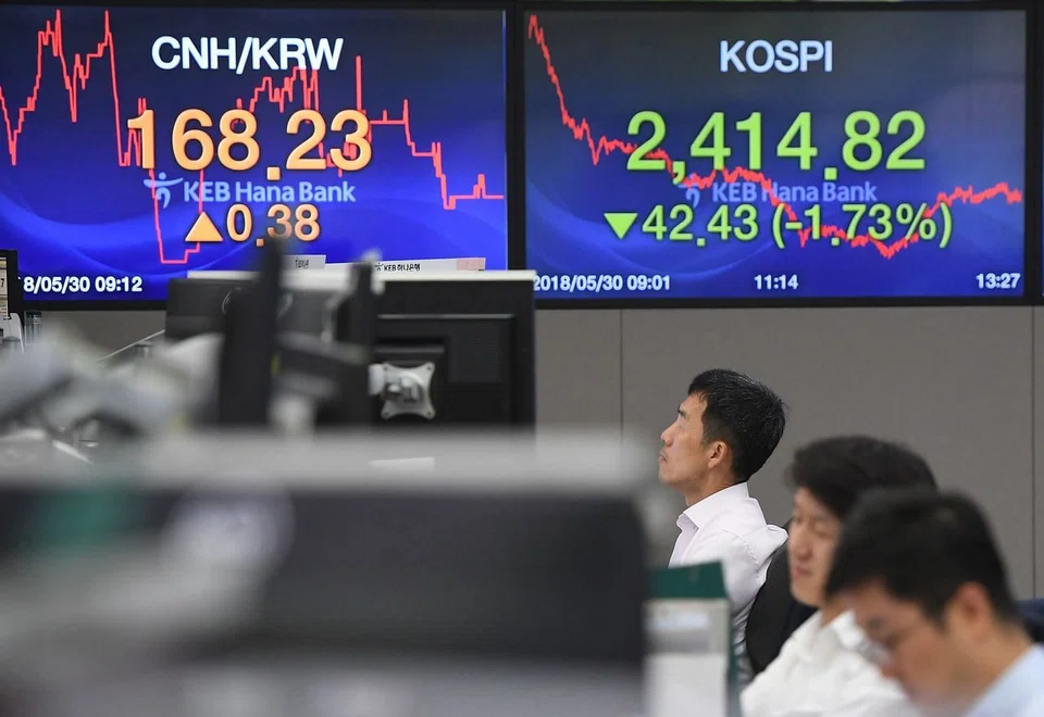 [SEOUL] South Korea's KOSPI stock index and the won fell on Friday ahead of a US deadline to impose tariffs on Chinese imports. South Korea's bond yields rose.