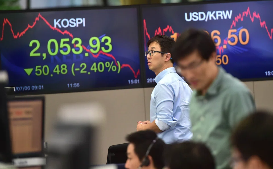 Offshore investors were poised to be net sellers for a eighth straight session, offloading a net 130.8 billion won (S$155.75 million) worth of stocks in the main board on the day.