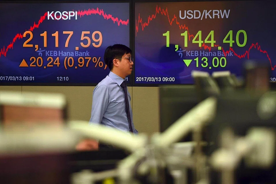 [SEOUL] South Korea's Kospi stock index rose on Tuesday. The Korean won edged down on the local platform while bond yields climbed.