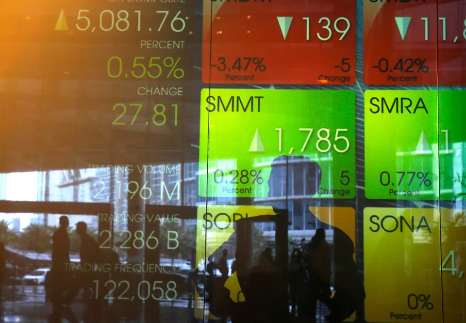 Jakarta's composite index closed down 1.2 per cent at 5,260.02 from Friday's record closing high of 5,323.89. Selling hit recent gainers such as Bank Mandiri and Unilever Indonesia.