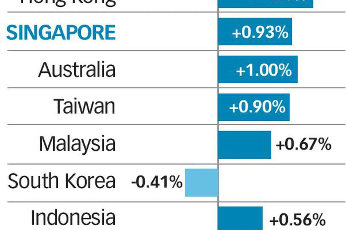 Australia's key index advanced 1 per cent, while Singapore and Taiwan rose 0.9 per cent and China inched up 0.4 per cent. Malaysia added 0.7 per cent, while Indonesia rose 0.6 per cent. Japan was on holiday.