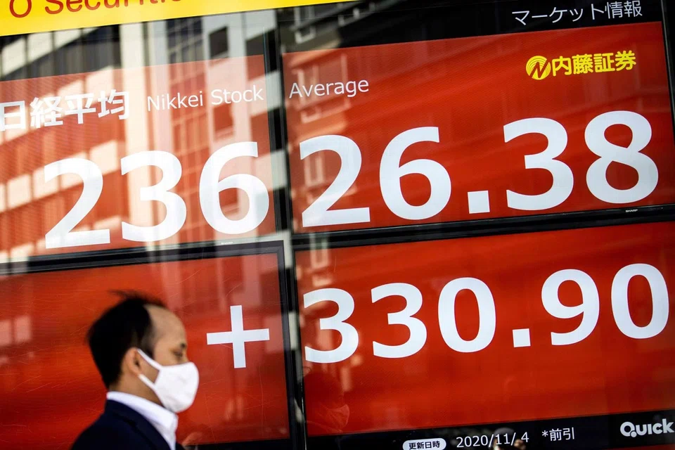 [TOKYO] Japanese shares rose on Wednesday as markets cautiously eyed the US presidential election results, while gains were capped as voting projections showed a tight race between President Donald Trump and Democratic challenger Joe Biden.