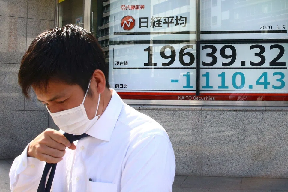 [TOKYO] Tokyo stocks sank more than 5 per cent Monday on fears over the novel coronavirus and a plunge in oil prices that sent the dollar down against the yen.