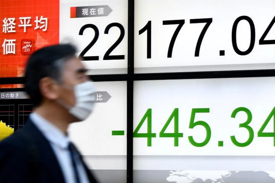 The key Nikkei 225 index fell 1.97 per cent, or 445.34 points, to 22,177.04 while the broader Topix index was down 1.43 per cent, or 25.55 points, at 1,765.42.