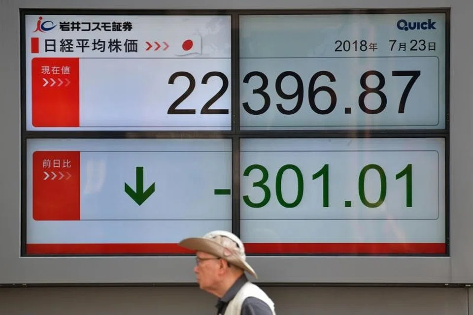 The benchmark Nikkei 225 index lost 1.33 per cent or 300.89 points to close at 22,396.99, while the broader Topix index was down 0.36 per cent or 6.28 points at 1,738.70.