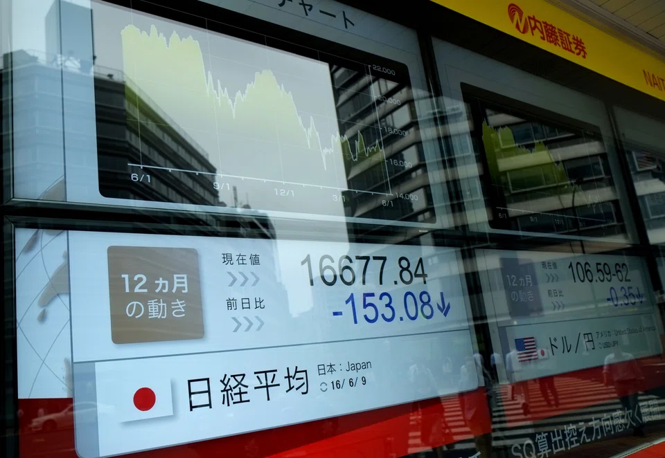 The Nikkei 225 shed 0.97 per cent, or 162.51 points, to close at 16,668.41, while the broader Topix index of all first-section shares slipped one per cent, or 13.56 points, to 1,337.41.