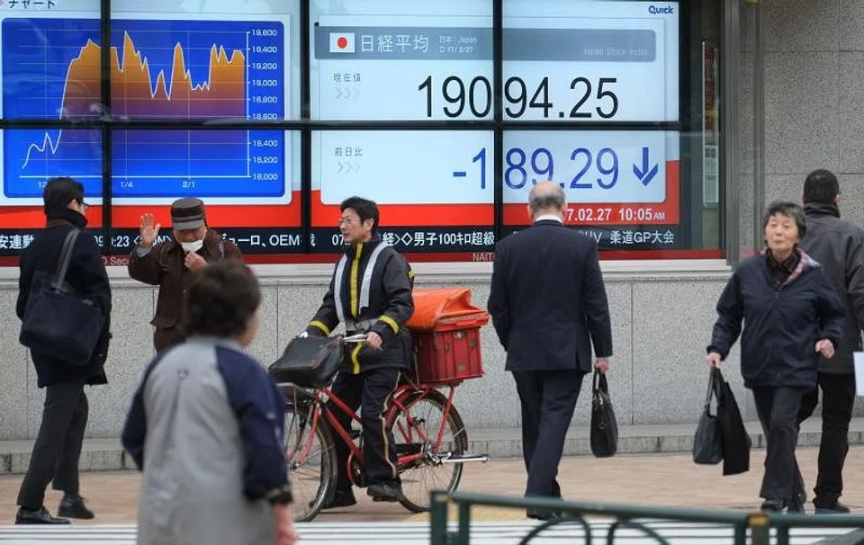 [TOKYO] Tokyo shares opened lower Wednesday as risk-on sentiment receded after Wall Street stocks took a hit as a key vote on President Donald Trump's health care reform was delayed.