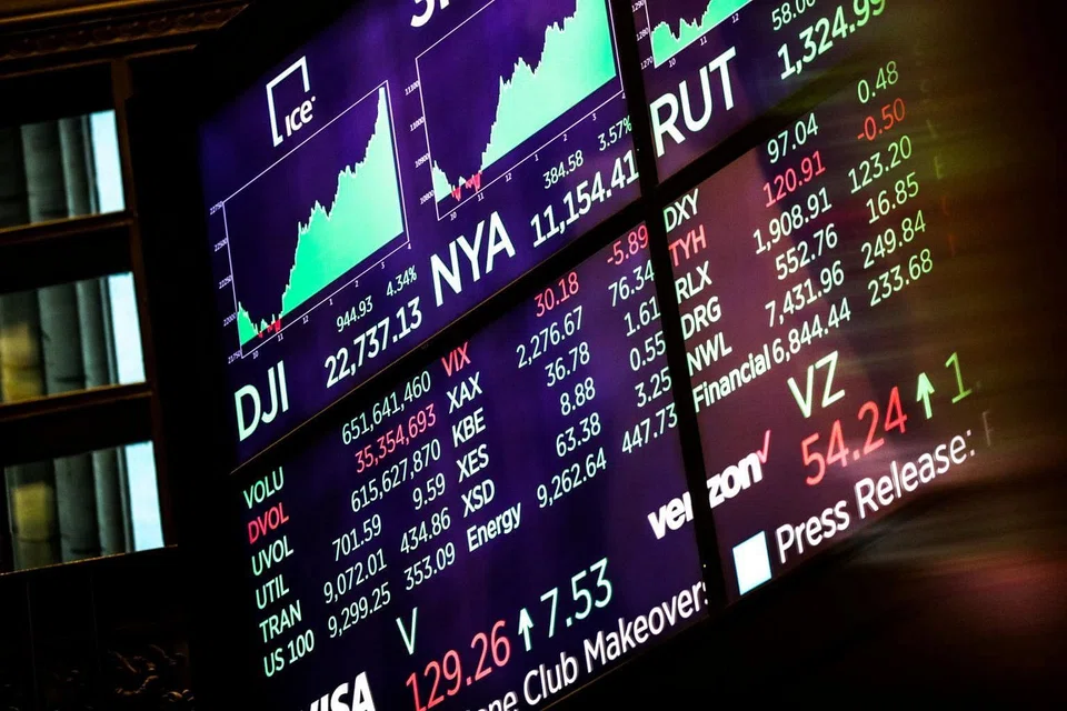 The Dow Jones Industrial Average finished up nearly 1,100 points, or about five per cent, at 22,878.45.