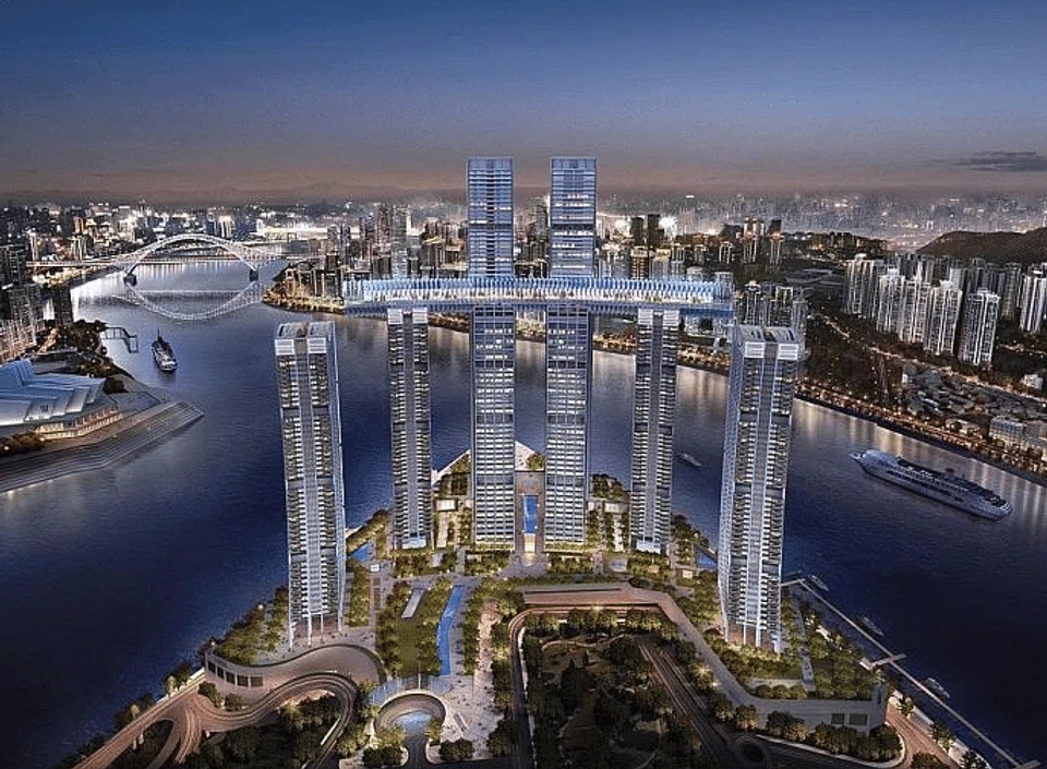 The 24 billion yuan (S$5 billion) development by CapitaLand and Ascendas-Singbridge will open in phases next year. It will comprise of eight towers located on Chongqing's Chaotianmen riverfront with a total construction floor area of 1.12 million square metres and contain a shopping mall, residences, offices and a hotel.