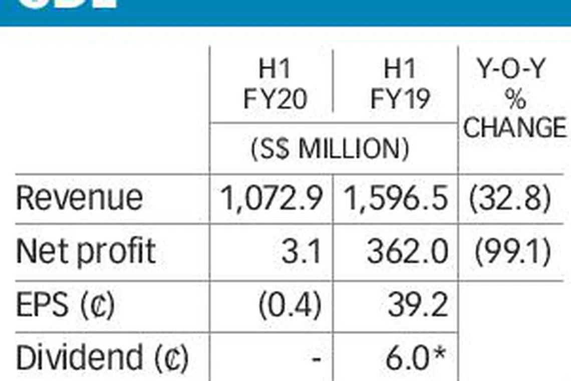 Revenue slipped 32.8 per cent to S$1.07 billion in H1 FY2020 from S$1.6 billion in H1 FY2019.