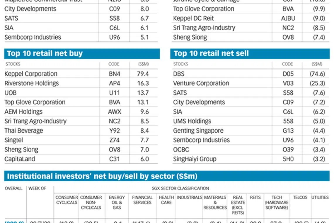 SUBSCRIBERSChanging handsTracking fund flows in the Singapore stock marketSharePublished Mon, Aug 17, 2020 · 09:50 PMChanging hands Singapore StocksCopyright SPH Media. All rights reserved.Reuse this contentFeedback