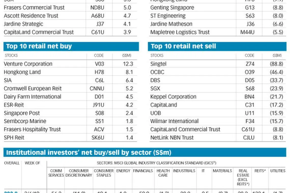SUBSCRIBERSChanging handsTracking fund flows in the Singapore stock marketSharePublished Mon, Jul 1, 2019 · 09:50 PMChanging hands Copyright SPH Media. All rights reserved.Reuse this contentFeedback