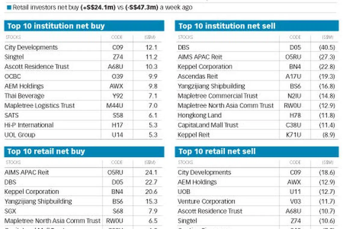 SUBSCRIBERSChanging handsTracking fund flows in the Singapore stock marketShareAdd BT as a preferred sourceAdd BT as a preferred sourcePublished Mon, Oct 21, 2019 · 09:50 PMChanging hands Copyright SPH Media. All rights reserved.Reuse this contentFeedback