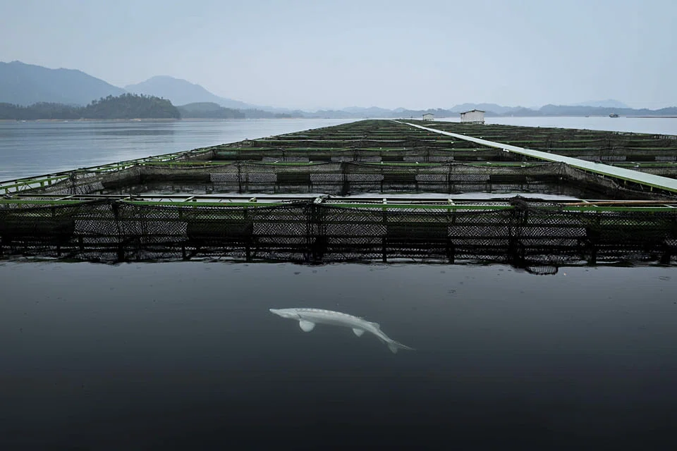 The bulk of China's production comes from a picturesque lake ringed by mountains in eastern Zhejiang province where industry leader Kaluga Queen breeds the giant fish.